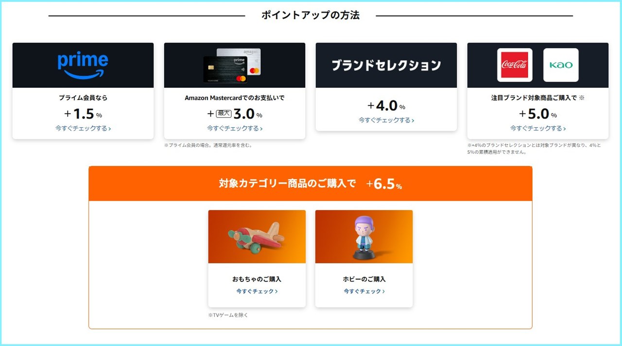 - 対象カテゴリー商品購入 +6.5%(おもちゃ、ホビー)