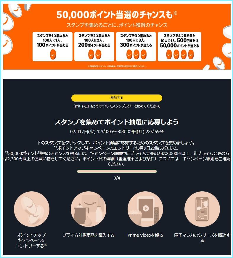 「Amazonスタンプラリー」最大50,000ポイントが当たるチャンス
